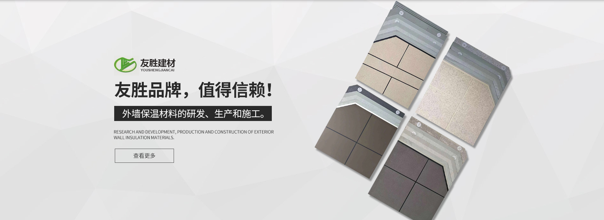 安徽友勝建材科技集團有限公司是一家專業(yè)從事建筑施工與節(jié)能保溫及裝飾裝修生產(chǎn)、施工企業(yè)。企業(yè)于2008年從事外墻保溫材料的研發(fā)。生產(chǎn)和施工。現(xiàn)公司旗下?lián)碛?安徽舒然裝飾 工程有限公司)裝飾裝修貳級資質(zhì)、防水防腐及保溫貳級資質(zhì)。旗下系列產(chǎn)品有:巖棉板、巖棉復合板、石墨聚苯板、珍珠巖板、勻質(zhì)板、地坪保溫隔聲板,粘結(jié)、抹面及無機輕型材料等。